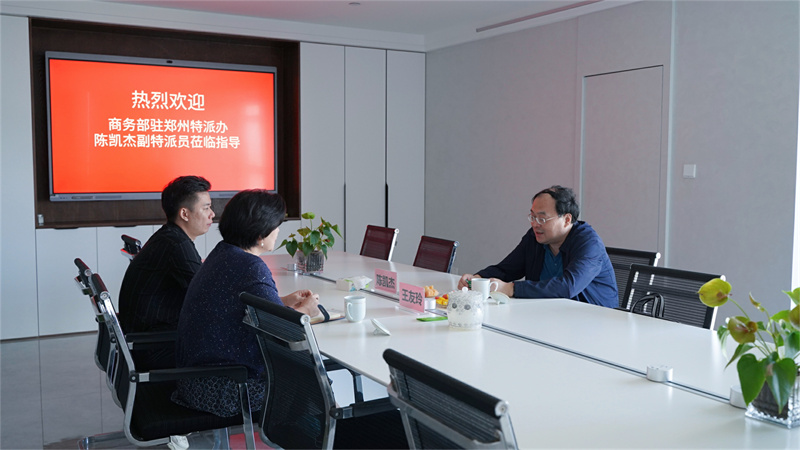 商務部駐鄭州特派員辦事處副特派員陳凱杰蒞臨天天公司調(diào)研指導
